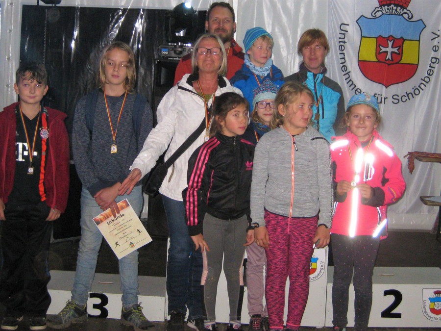 Am diesjährigen Schönberger Lichterlauf, am 20. Oktober 2018, liefen knapp 20 Personen für unseren Verein - wunderbar! Zur Siegerehrung war dann aber nur noch ein kleines Häufchen vorort, es wurde spät und die Kleinsten mussten ja ins Bett ...